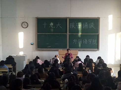 太阳成城集团tyc234cc召开“十九大报告诵读”年级大会