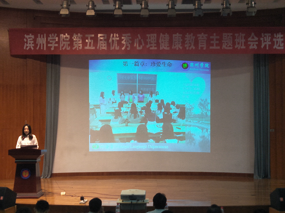 本次活动主题是“珍爱生命 激扬青春做时代新人”。我院同学王宜瑾结合此次主题,用幻灯片展示了我院最近举办的活动,包括我院主办的“诗词大会”、“运动会活力开幕式”、“心理班会”、“漂流瓶游戏活动”等活动。她根据心理健康教育,结合我院特色,展示了我院积极向上心理文化月的氛围,密切联系了大学生心理健康教育工作实际,各种活动的结合,有较高理论价值和较强的实际指导意义。总体答辩内容的主题明确,结构严谨,论据充实,文字表述规范、简洁、流畅。最后,我院获得了不错的成绩。