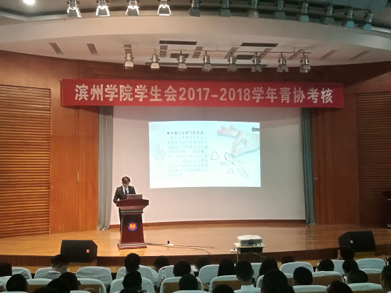 本次会议旨在通过青协各职能部门2017-2018年度工作总结,将工作中遇到的各类问题进行汇总和解决,同时对工作中所获得的经验及对下学期的展望与大家分享。考核中我院徐启深同学就2017-2018学年青年志愿者协会的工作进行总结和展示,并提出下一年的工作目标,提出为了青年志愿者协会的事业而一直奋斗着。我们要关注国家和民族的未来,服务社会,奉献他人。