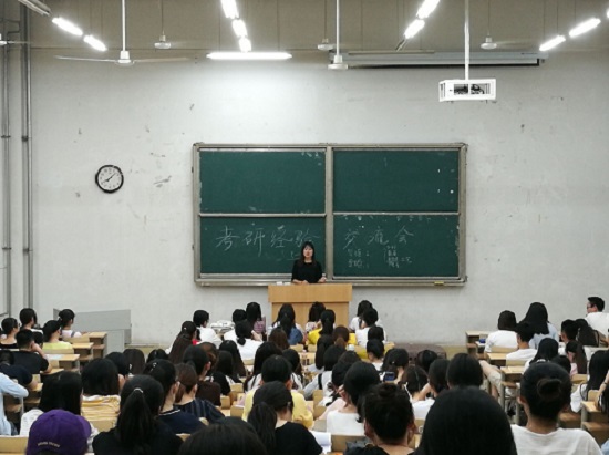 交流会伊始,受邀来此做经验交流的学生代表们首先就为什么要考研以及如何考研等问题做了详细讲解。学生代表们指出,考研一方面是为了就业,同时也是为了改变出身,为自己更好的发展打下基础。对于如何考研,他们强调,考研的成功等于正确的方法加之不懈的努力以及恰当的复习材料。最后,考研代表们向同学们分析了面试中的相关技巧,使同学们对这一方面的知识有了进一步的了解。