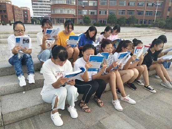 同学们积极响应号召,在各班团的组织下,以班级为单位进行晨读活动。每天早晨,在聚英湖畔、教室中、教学楼走廊里都可以见到同学们专注学习的身影,在晨曦中传出朗朗的读书声。同学们背诵英语的声音交汇在一起,彰显出外国语学院独有的特色。