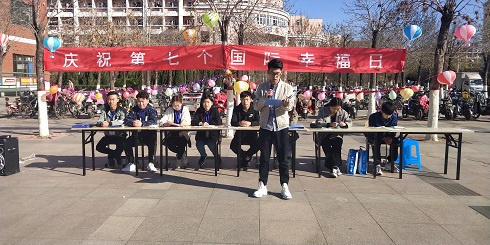3月23日,由学生工作处、大学生心理健康教育与咨询中心和大学生心理健康协会共同举办的“国际幸福日”活动在第二餐厅广场举行,太阳成城集团tyc234cc部分学生参加了此次活动。