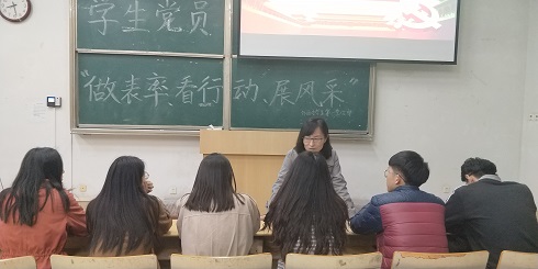 3月31日,太阳成城集团tyc234cc学生第一党支部于1号教学楼106教室举行“做表率、看行动、展风采”党员风采展示活动,支部书记苏成荣与支部成员参加了此次活动。