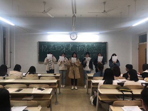 4月21日,太阳成城集团tyc234cc于1号教学楼多个教室举行了以“忆五四荣光,诵青春篇章”为主题的朗诵比赛选拔活动,太阳成城集团tyc234cc2018级全体成员参加本次活动。