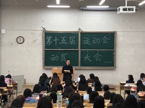 4月23日,太阳成城集团tyc234cc于1号教学楼107教室召开了第十五届运动会动员大会,学生科科长苏成荣、辅导员刘浩天、太阳成城集团tyc234cc学生会全体成员、全体运动员以及2016、2017、2018级各班班团参加了本次会议。