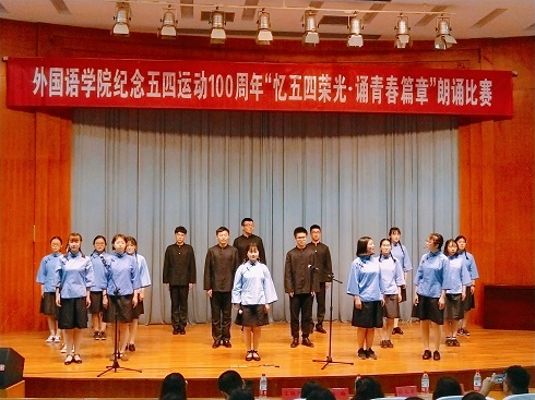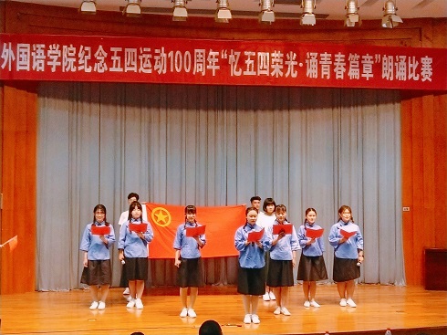 朗诵比赛开始后,同学们的表演以铿锵有力的气势、充沛饱满的感情将在场师生带入诵读篇章情境。各班朗诵内容丰富、形式新颖,感情丰富。“五月的火,不会磨灭;五月的精神,会永远飞扬”,2018级法语班同学带来《五四礼赞》,用激昂的声音将在场师生带回百年前历史时空;2017级商务英语本科二班的《青春最强音》,将五四精神与新时期时代精神相结合,深情的朗诵引发了同学们的思考;2018级英语本科一班的《不忘初心,筑梦前行》,既表达了对自己的激励,也展现了对祖国的热情礼赞。各班优异的表现赢得了在场师生的一致认可,比赛现场气氛活跃,掌声不断。