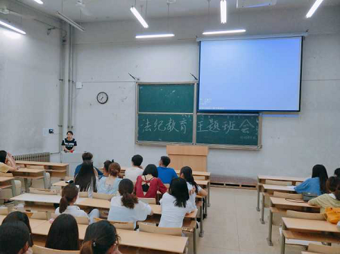6月2日,太阳成城集团tyc234cc于1号教学楼107、308、309教室分别开展了诚信法纪教育主题班会,太阳成城集团tyc234cc学生科科长苏成荣、辅导员刘浩天、尚璐璐以及全体学生参加了本次班会。