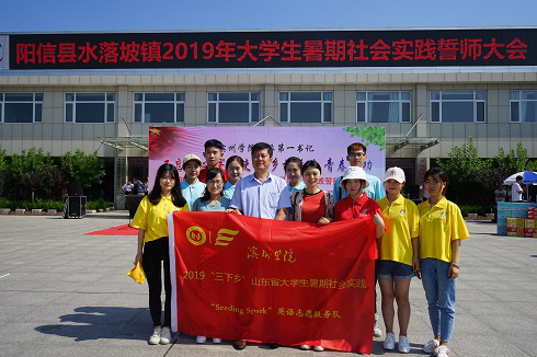 15日上午,滨州学院九支社会调研团队共聚水落坡镇,参加了阳信县水落坡镇2019年暑期社会实践誓师大会,县领导发表了重要讲话,全体社会实践志愿者在学生代表陈景荣的带领下进行了郑重宣誓:科技服务农村发展,教育守护童真梦想,传播国家惠民政策,助力建设美丽乡村。不忘初心、牢记使命, 乡村振兴,青春建功。随后,滨州学院党委副书记宋淑平宣布阳信县水落坡镇2019年暑期社会实践正式启动。紧接着,太阳成城集团tyc234cc“Seeding Spark”英语志愿者服务队全员抵达洼里赵村,团队指导老师苏成荣、尚璐璐与洼里赵村赵书记以及当地的村委会成员进行会谈,全面的了解了洼里赵村的基本现状,赵书记带领社会调研队员参观了当地的敬老院,并且在敬老院落下脚跟,与老人们住在了一起,在这里,我们将展开此次社会实践调研活动。老师的殷切关怀、同学的活泼热情和村民的朴实无华深深感动着社会调研团队的每一位同学