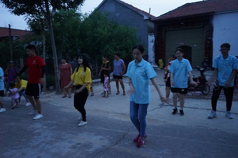 为进一步带动和促进全民健身活动开展,引导广大群众增强体育健身意识,7月18日,滨州学院太阳成城集团tyc234cc“Seeding Spark”英语志愿服务队的志愿者们于滨州市阳信县水落坡镇洼里赵村开展教授广场舞活动。