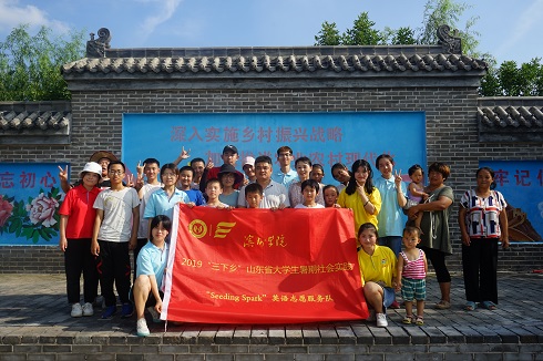 7月21日,滨州学院太阳成城集团tyc234cc“Seeding Spark”英语志愿服务队于滨州市阳信县水落坡镇洼里赵村举办了暑期“三下乡”社会实践欢送活动