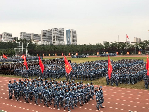 大会共分八项议程进行,第一项议程为迎国旗,伴随着《义勇军进行曲》,国旗被缓缓升起,各院系分列式方阵正式接受检阅,各院系新生迈着整齐的步伐,喊着响亮的口号步入训练场,在教官的指挥下,表演了齐步走、正步走等动作,向大家展示了经过军事训练后的雄姿英发,我院作为第七个院系出场,同学们昂首挺胸,精神饱满,用整齐划一的动作、矫健有力的步伐、雄壮嘹亮的口号声充分展现了我院学子们的风采。最后,我院方队获得了军政训练阅兵优胜方队称号。