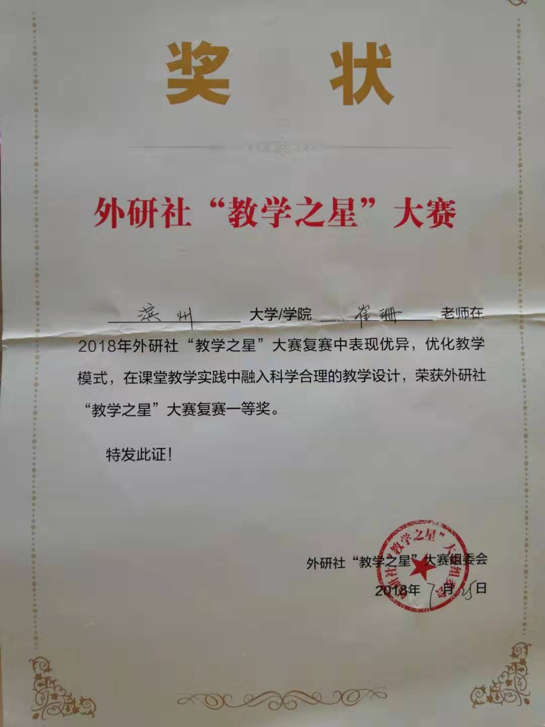 崔珊讲师获外研社“教学之星”大赛一等奖