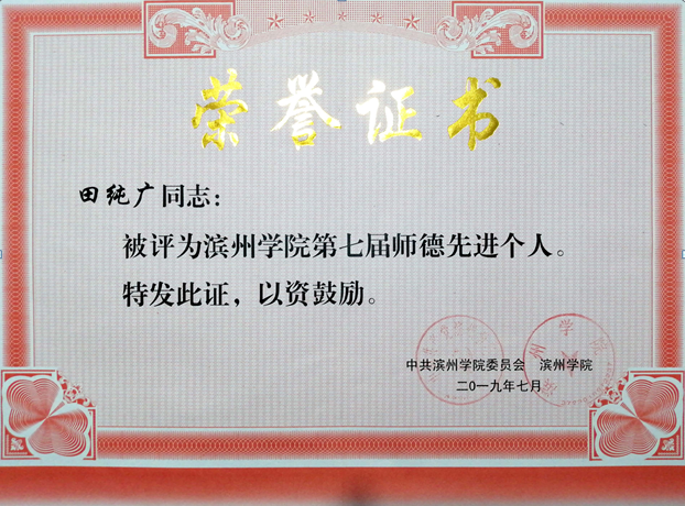 田纯广被评为师德先进个人