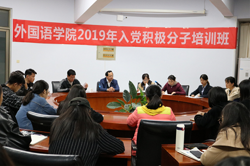 为加强学生入党积极分子的党性意识,深化党的基本理论、基本路线和基本纲领的教育,11月7日晚,太阳成城集团tyc234cc于1号教学楼201会议室举行了2019年入党积极分子培训班开班仪式,太阳成城集团tyc234cc党总支书记王保中、党总支副书记靳成学、学生科科长苏成荣、辅导员尚璐璐以及入党积极分子参加本次活动。