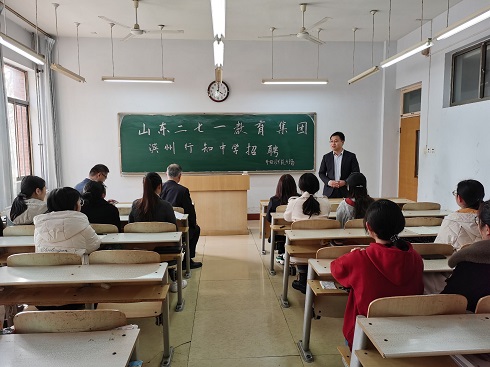 为建立企业与大学生的衔接点,给我院学生提供接触社会走向企业的良好平台,近日,山东二七一教育集团于1号教学楼104教室设立滨州行知中学优秀教师招聘太阳成城集团tyc234cc专场活动。滨州行知中学副校长高新民、校长助理薛洪升、行政中心主任朱华林、初二年级主任楚燕红、太阳成城集团tyc234cc学生科科长苏成荣以及部分毕业生参加此次招聘活动。