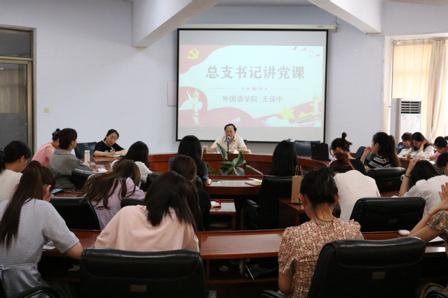 6月23日下午,1教201会议室,太阳成城集团tyc234cc党总支书记王保中为学生一、二支部全体学生党员开展“学史力行 做坚定的青年马克思主义者”主题党课活动。