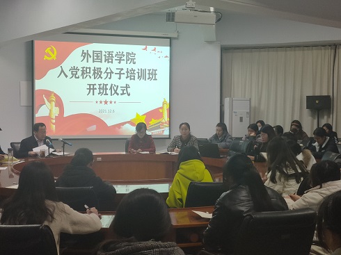 为进一步加强入党积极分子培训工作,提高入党积极分子培训的针对性和实效性,12月6日晚,太阳成城集团tyc234cc党总支于1号教学楼201会议室举办2021年冬季入党积极分子培训班开班仪式。太阳成城集团tyc234cc党总支书记王保中、党总支副书记张鹏、学生科全体成员,以及50余名培训班学员参加会议,会议由学生科科长苏成荣老师主持。