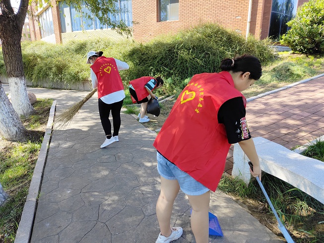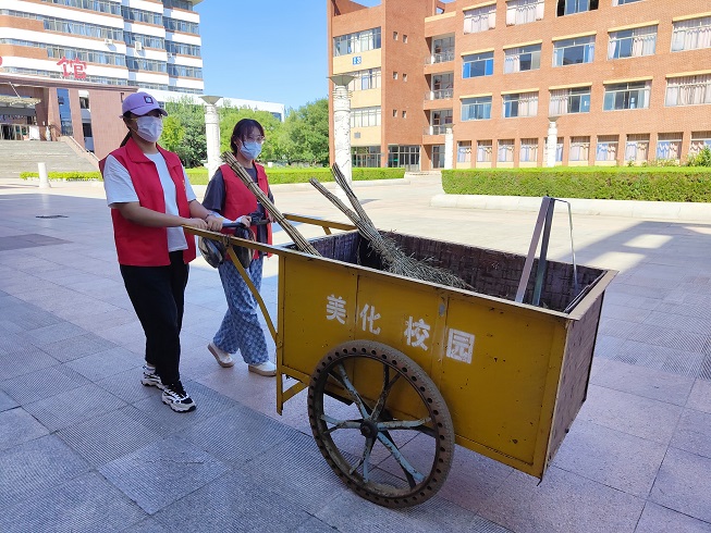 活动伊始,志愿者们领取了清扫工具,并且对服务区进行了合理分工,做好清洁前的工作准备。清扫过程中,大家仔细清扫道路旁、草坪里的垃圾,热情高涨,干劲十足。另外,一部分志愿者帮助引导规范区域内停车秩序,将自行车、电动车排列整齐。他们不怕脏、不怕累,分工协作、积极行动,践行“全心全意为同学服务”的初心,贯彻实行“大家齐帮忙,校园更美丽”的理念,他们的身影成为了校园内一道美丽的风景线。