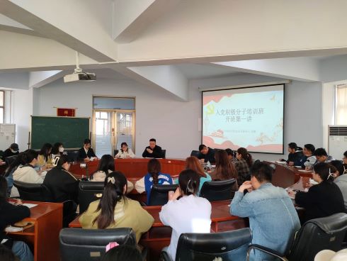 开班仪式后,学院党总支副书记张鹏以《小我融入大我 初心践行使命》为题,带来了精彩的主题党课。他勉励同学们要有时代的责任与担当,感党恩、跟党走,弘扬社会主义核心价值观,将“小我”融入“大我”,努力把自己培养塑造成志存高远、脚踏实地的社会主义的建设者和接班人。希望全体参训学员珍惜机会,认真对待此次培训,在日常学习、生活中发挥先锋模范作用,努力做到思想上先进,学习上优秀,工作上带头,使自己成为全面发展的优秀大学生的榜样,坚定信仰,追光逐行,以实际行动来圆满完成这次学习任务。
