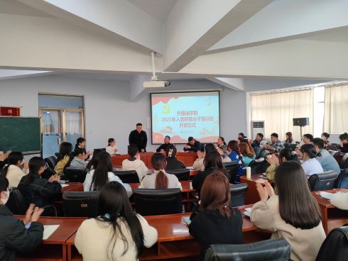 开班仪式在庄严肃穆的国歌声中拉开帷幕。学院党总支书记曲福华讲话。他首先向今天参加培训的全体同学表示祝贺,给与会同学分享了自己学生时代入党时的场景,强调参加入党积极分子培训,是每一位积极向党组织靠拢、要求进步的学生的必修课程,是一次难得的学习机会,更是政治生活中的一件大事。他向在场同学提出四点希望:一要不忘初心,牢记使命。坚持党的领导,永远跟党走。二要明确自己的入党动机,思考自己“为什么入党”,明确自己是要为人民幸福和民族振兴而加入中国共产党。第三要端正态度,争取学有所获,向党员看齐,在思想和言行上始终与党中央保持高度一致。四要发挥奉献精神,在日常学习生活中积极为同学们服务,发挥先锋模范带头作用。