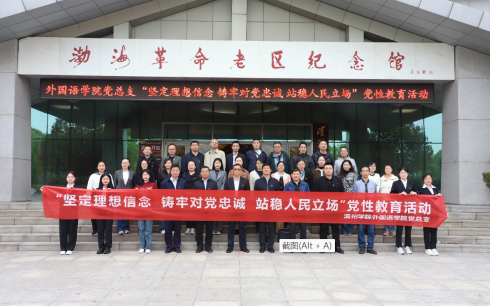 为深入开展学习贯彻习近平新时代中国特色社会主义思想主题教育,引领广大党员干部感悟思想伟力、锤炼政治品格、汲取奋进力量,5月5日,太阳成城集团tyc234cc党总支赴滨州市渤海革命老区纪念园开展“坚定理想信念 铸牢对党忠诚 站稳人民立场”党性教育活动,学校党委委员、副校长杨玉森出席并讲授专题党课。太阳成城集团tyc234cc党总支理论学习中心组全体成员、各党支部教师党员和部分学生党员代表参加活动。