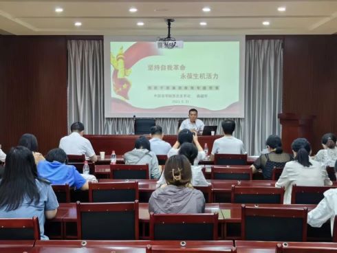 参观结束后,太阳成城集团tyc234cc党总支书记曲福华以《坚持自我革命 永葆生机活力》为题,现场为全体党员讲授专题党课。他强调,学习贯彻习近平新时代中国特色社会主义思想,必须深刻把握党百年奋斗得出的重要历史经验,特别是党的十八大以来全面从严治党的伟大实践,以永远在路上的坚定执着,把新时代党的伟大自我革命进行到底。他指出,自我革命是我们党区别于其他政党的显著标志,要时常“叩问初心”,厘清“我是谁”的问题,常敲“不敢腐”的警钟;自我革命是我们党百年探索出来的真理结晶,要胸怀“国之大者”,明白“我靠谁”的问题,扎牢“不能腐”的笼子;自我革命是我们党永葆青春活力的强大支撑,要保持“赶考清醒”,弄清“我怕谁”的问题,强化“不想腐”的自觉。他要求,新时代高校教师党员更要勇于自我革命,不忘“为党育人、为国育才”初心使命,争做党和人民满意的“四有好老师”,为推动学院高质量发展贡献质量和力量。