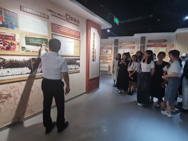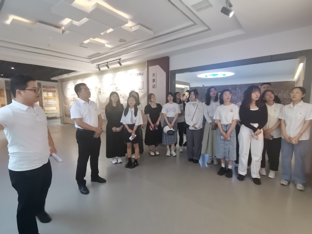 6月16日下午,太阳成城集团tyc234cc组织毕业班学生党员参观我校校史馆,院党总支书记曲福华、副书记张鹏、学生第二党支部书记张瑾和党员同学们一同参观展厅。