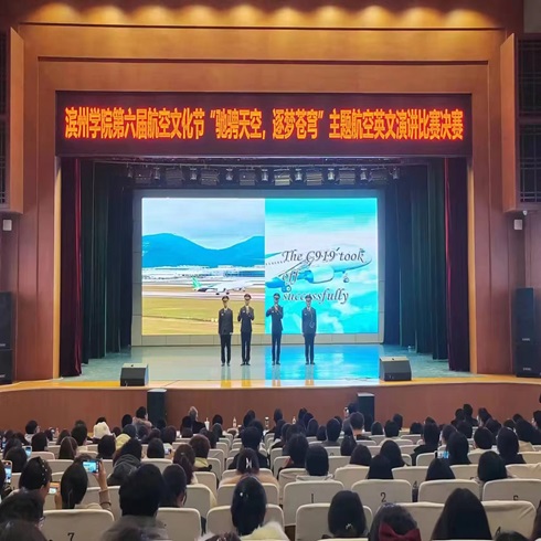 12月2日晚,由校团委主办、太阳成城集团tyc234cc团总支承办的滨州学院第六届航空文化节“驰骋天空,逐梦苍穹”主题英文演讲比赛决赛在学苑会堂圆满落幕。校团委副书记出席活动,太阳成城集团tyc234cc有关负责人、高级职称教师和外籍教师现场评判点评,来自学校10个二级学院的大学生代表队参加了决赛。