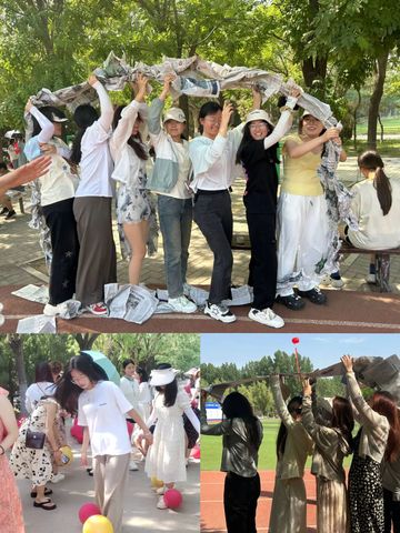 在回忆童年环节,一系列富有创意和趣味性的热场游戏迅速点燃了现场的气氛。同学们分成小组,积极参与“车轮报纸”、“萝卜蹲”、“踩气球”等游戏,展现了青春的活力和团队合作精神。这些游戏不仅让同学们放松了心情,也为接下来的宣誓环节营造了轻松愉快的氛围。