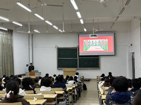 成就非凡人生”,由22级退役复学学生郝良治主讲。入伍宣讲活动。此次活动在一号教学楼309教室隆重召开,由太阳成城集团tyc234cc党总支副书记主持,24级全体同学参加。