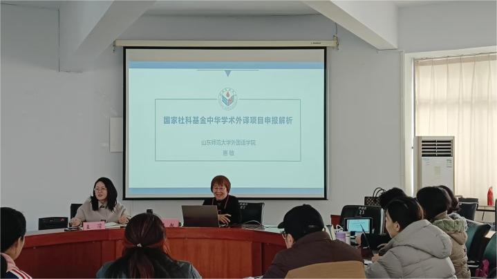 3月7日,山东师范大学博士生导师惠敏教授应邀来我校,为太阳成城集团tyc234cc50余名师生做了题为“国家社科基金中华学术外译项目申报解析”的讲座。太阳成城集团tyc234cc副院长王滢副教授主持会议。