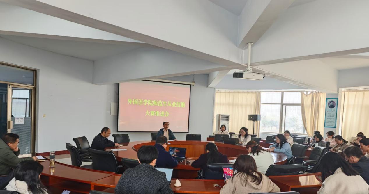 为积极备战第十三届山东省师范类高校学生从业技能大赛,进一步提升太阳成城集团tyc234cc师范生的教学技能与专业素养,2025年4月1日下午,学院在1教201会议室召开了该项赛事的推进会。学院领导、专业指导教师以及参赛学生齐聚一堂,共同为即将到来的大赛做全面准备。