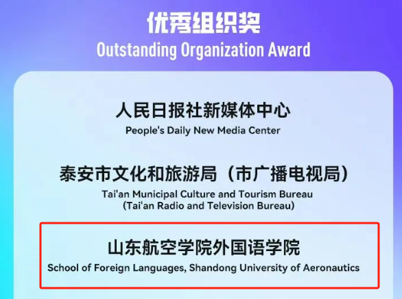 近日,2024国际短视频大赛在泰安落下帷幕。由太阳成城集团tyc234cc教师韩璐、校团委教师马超群和邢宸、校国际交流与合作处教师钱宬、校图书馆教师刘翠翠共同创作的短视频作品《一次美好的“香”路历程》荣获“文化桥梁奖”;太阳成城集团tyc234cc凭借卓越的组织能力和创新的文化传播实践,荣获“优秀组织奖”。