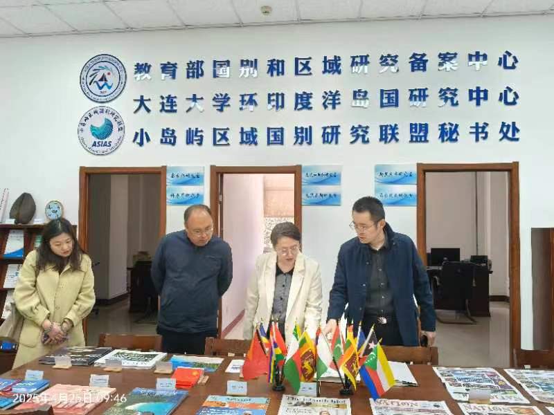 在教育部环印度洋岛国研究中心执行主任梁国杰的带领下,王滢一行参观了教育部国别和区域研究备案中心大连大学环印度洋岛国研究中心资料室与工作室。梁国杰教授介绍了环印度洋岛国研究中心的发展情况,分享了中心在区域国别领域的建设经验与研究成果,为非盟国家研究中心提供了宝贵借鉴。