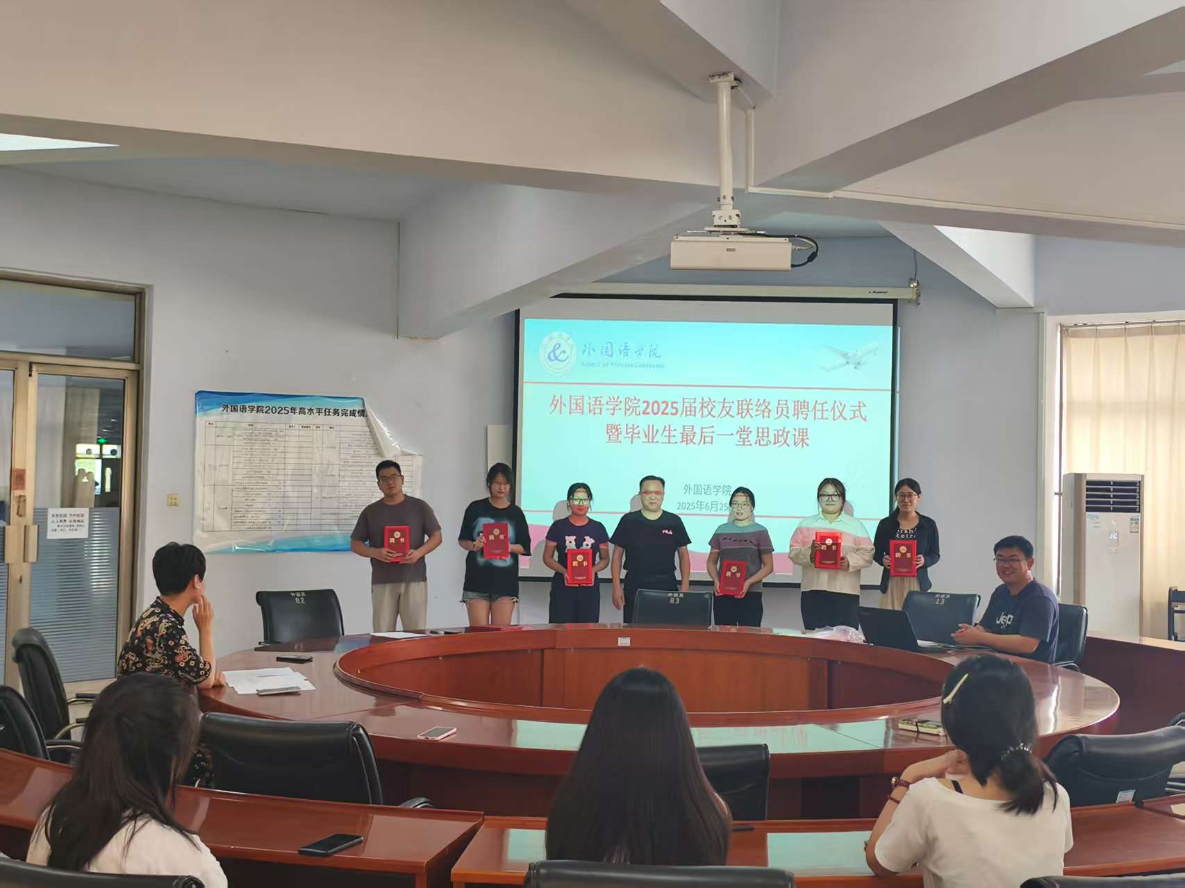 6月25日,太阳成城集团tyc234cc党委书记为毕业生讲最后一堂思政课,并举办了2025届校友联络员聘任仪式,太阳成城集团tyc234cc党委书记张健、党委副书记张然、毕业班辅导员梅竹以及2025届毕业生共同参与了此次活动。