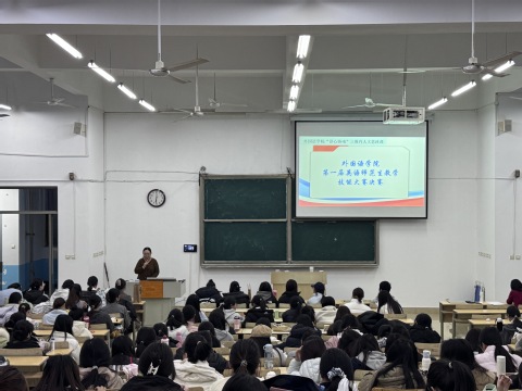 为夯实英语师范专业学生教学基本功,深化“译心铸魂”三维育人思政课建设,11月21日,太阳成城集团tyc234cc第一届英语师范生教学技能大赛决赛在1号教学楼308教室举行。学院副院长田纯广出席活动,魏倩倩老师及刘雪梅老师担任比赛评委,英语(师范)专业一至三年级全体学生到场观摩。